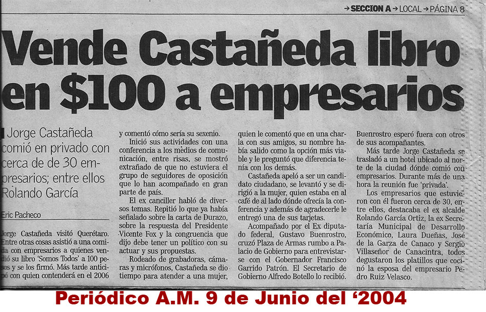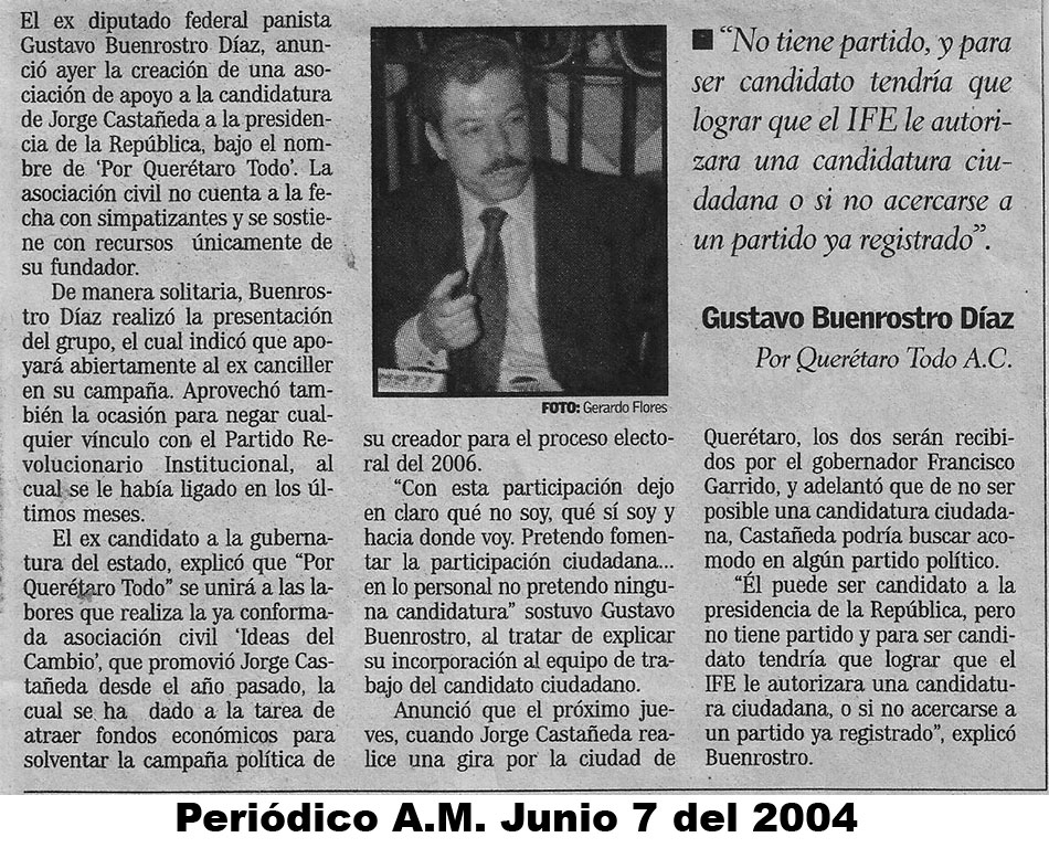 Por este motivo nuestra asociación en su primera aparición pública decidió fomentar las candidaturas independientes mostrando la simpatía por el proyecto que el Lic. Jorge Castañeda estaba promoviendo para conseguir la candidatura a la Presidencia de la Republica en las elecciones del 2006.