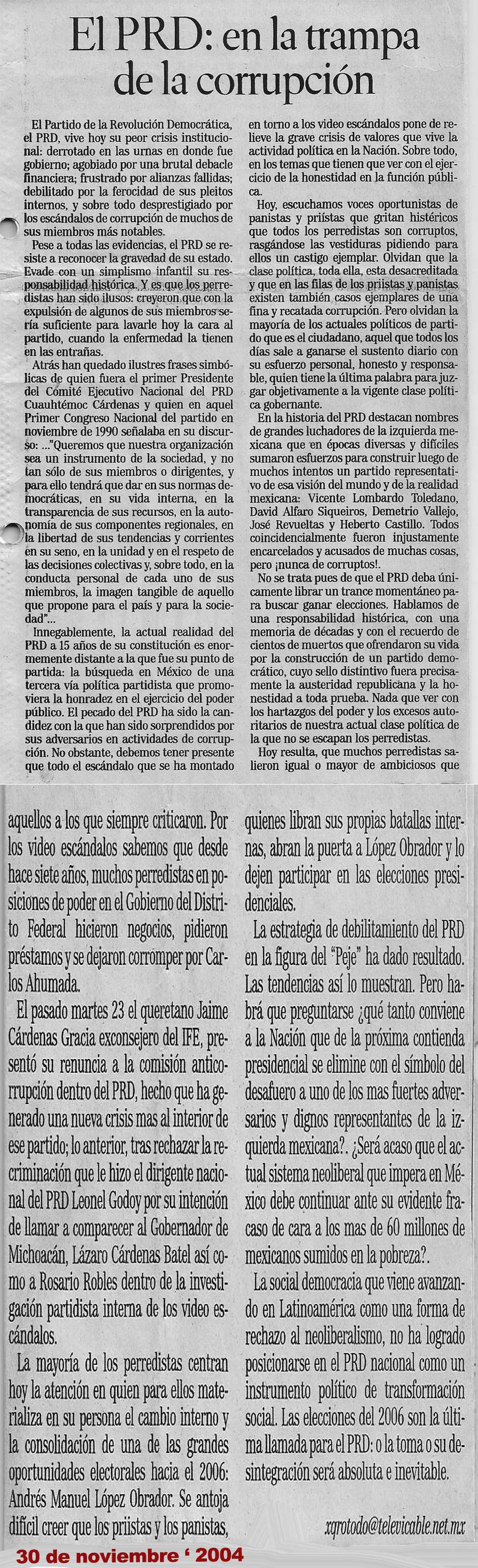A 15 años de la constitución del PRD Gustavo Buenrostro vaticino el declive de este importante partido político… ¿será cierto que el PRD cayó en la trampa de la corrupción como así proclamaron los priistas y panistas?, interesante análisis de Por Querétaro Todo.